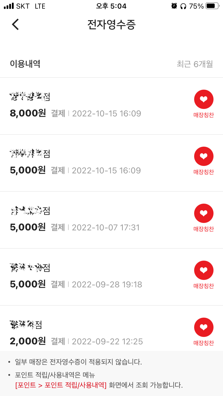 과거 구매했던 전자영수증 목록이 보입니다.