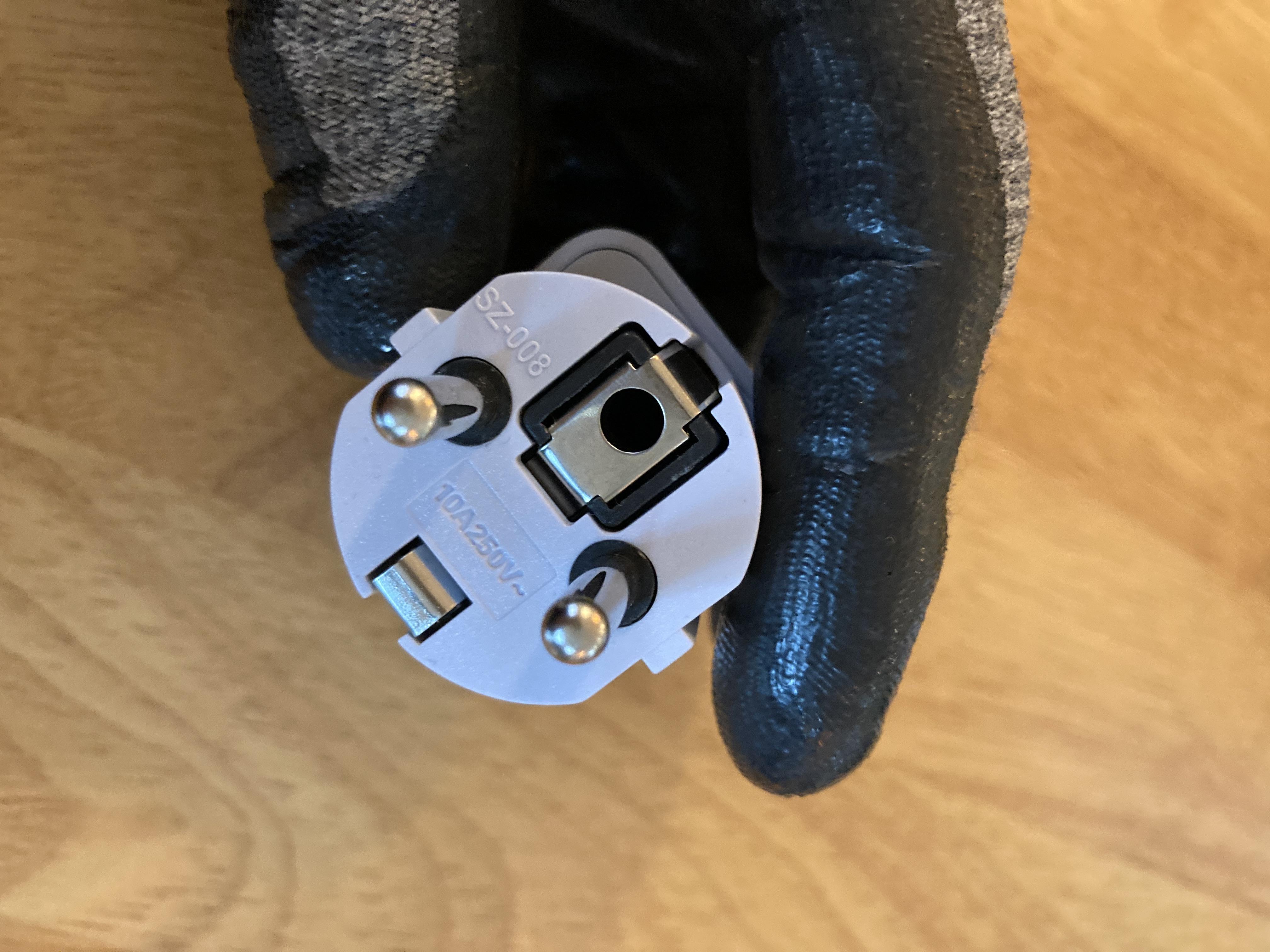 플러그 모양이나 두께는 국내용과 같습니다. 접지 단자도 있습니다.