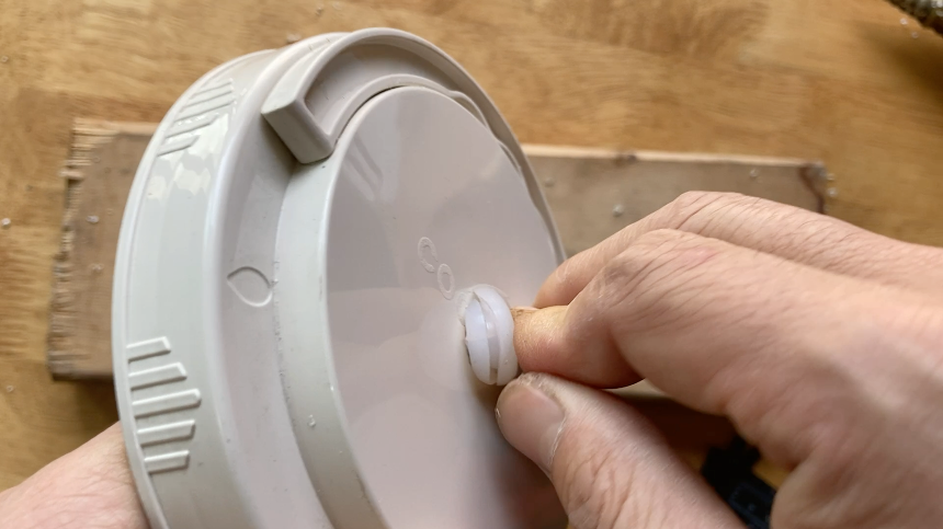 실리콘 고리를 뚜껑에 결합해 주고 에어락을 꽂아 봅니다.