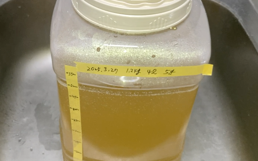 약 한 달간 발효 후, 병에 나눠 담아 냉장 보관하면 마실 수 있습니다.