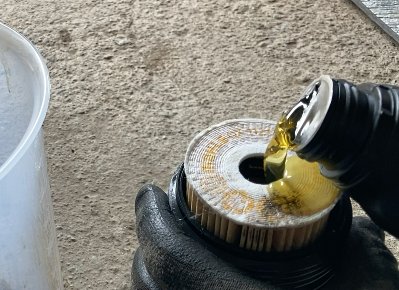 신품 오일을 오일필터에 넘치지 않을 정도로 넣어 줍니다.