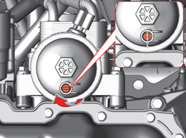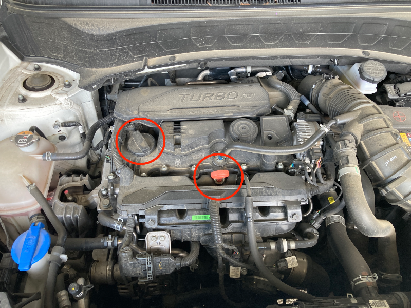 엔진오일 필러 캡을 시계반대 방향으로 돌려 열어 준 후, 원활한 오일 배출과 이물질 유입 방지를 위해 캡은 꽉 잠그지 말고 살짝 닫아 놓습니다.