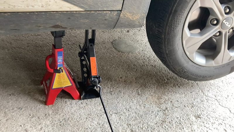 자동차 잭을 이용해 차량을 들어 줍니다.