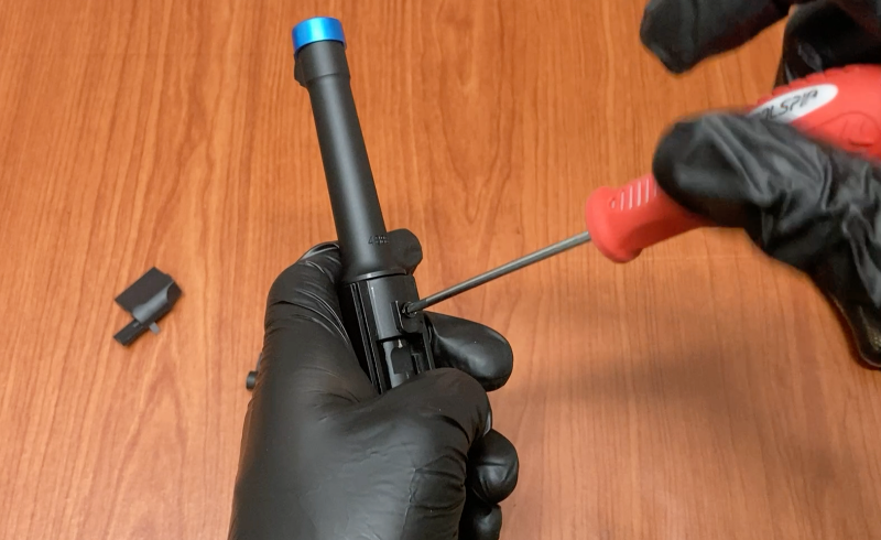 총열부를 앞쪽으로 밀어 주면, 총열부가 분리 됩니다.