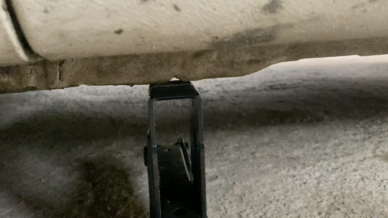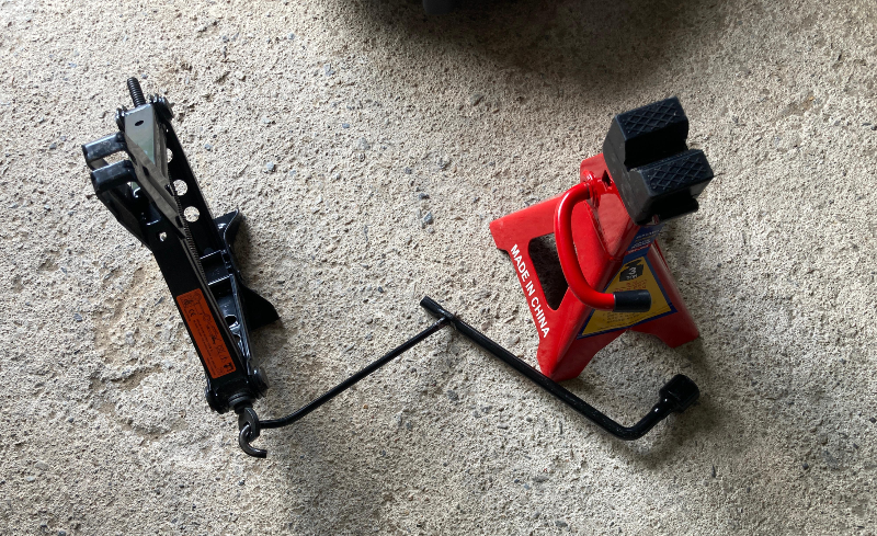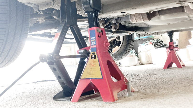 자동차 잭을 이용해 차량 양쪽을 완전히 내려 줍니다.