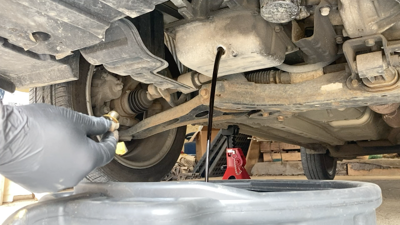 드레인플러그를 제거하면 오일이 쏟아져 나옵니다. 주의하시기 바랍니다.