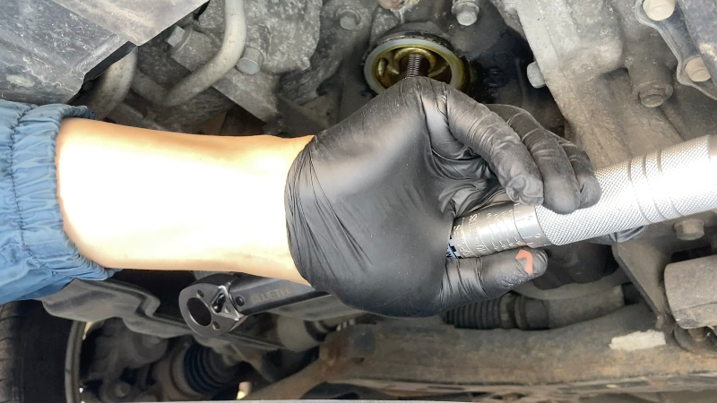 오일필터를 장착합니다. 어느정도 잠가준 후 마지막에 토크렌치로 잠가줍니다. 마지막에 토크렌치 규정 토크는 1.2~1.6kgf.m