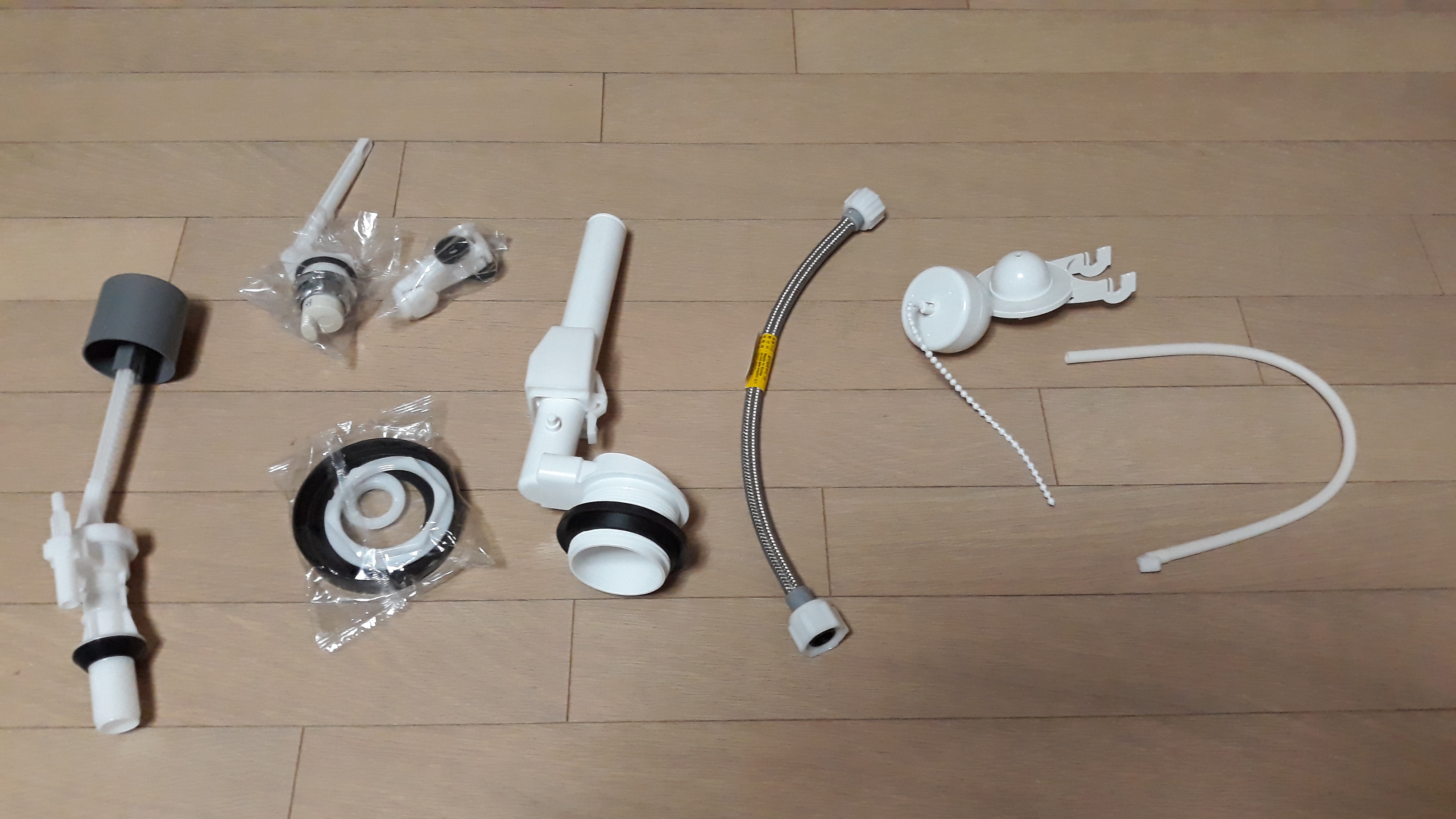 무소음 필밸브, 절수 측면 핸들, 플래시밸브, 접수관, 절수마개&보주부구, 오버플로우관, 너트및고무패킹 으로 구성 되어있습니다.