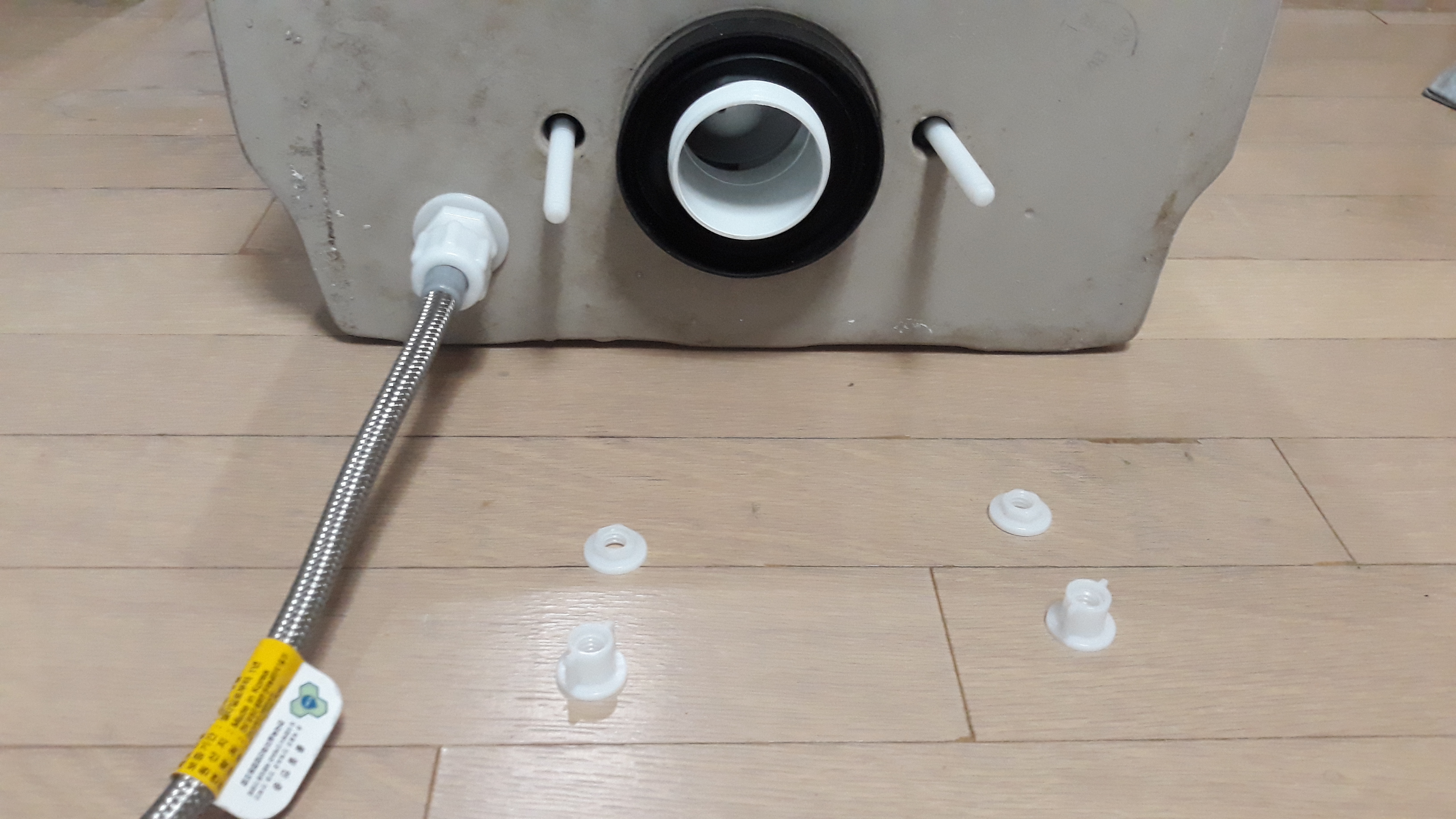 이제 탱크와 양변기를 연결 한 후 연결 볼트를 조여주고, 접수관을 수도에 연결 해주면 됩니다.