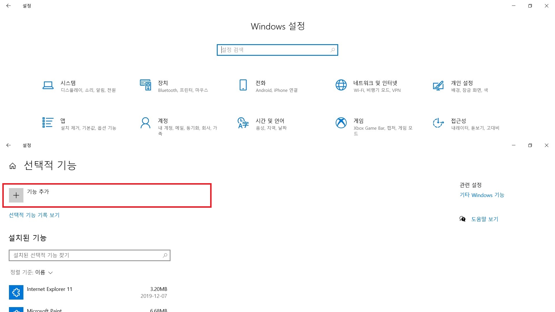 선택적 기능에서 기능 추가를 클릭 합니다.