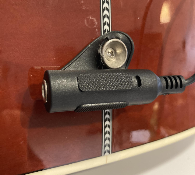 먼저 픽업을 사운드 홀안에 넣어 줍니다. 줄을 풀지 않고 장착했기때문에 사운드홀안에 깊이 집어 넣은 후 사운드홀에 장착했습니다.