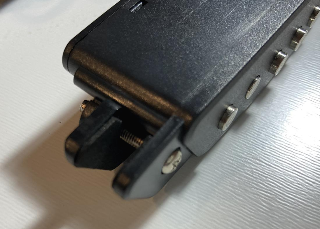 연결 잭은 엔드핀(멜빵고리) 에 걸었습니다. 연결 부분이 딱딱해서 엔드핀에 거는데 잘 안들어가 시간이 좀 걸렸습니다.