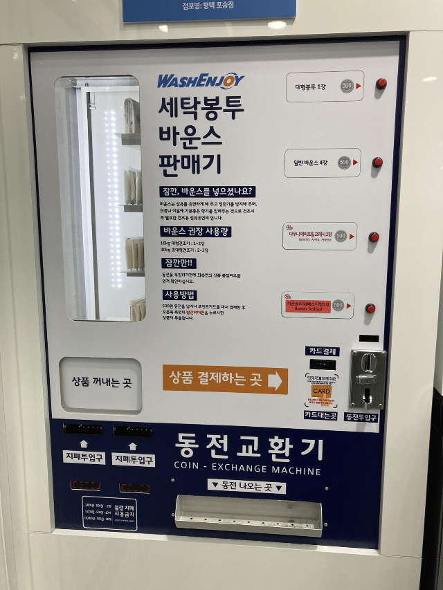 건조기 이용 전 섬유유연제를 넣기 원한다면 동전교환기에서 섬유유연제를 구입할 수 있습니다.