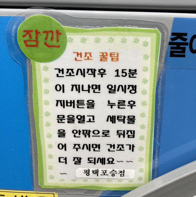 이런경우 건조시 중간에 잠시 기계를 멈춘 후 빨래를 잘 뒤집어 주거나