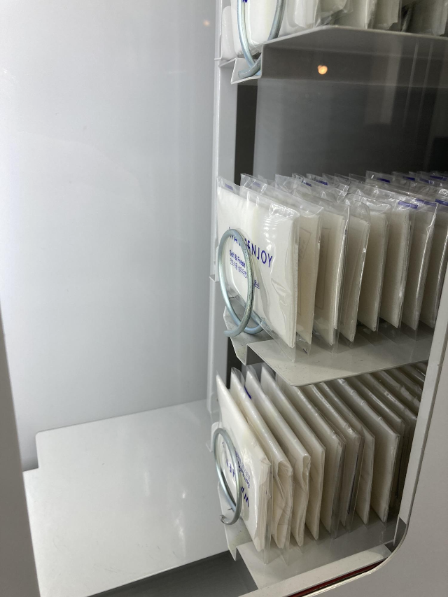 동전 이나 포인트카드(멤버쉽카드)를 터치 한 후 원하는 섬유유연제를 선택하면 제품이 나옵니다.