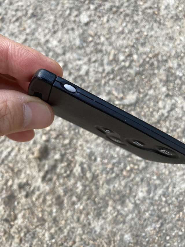 배터리 교체를 위해 옆면 회색 버튼을 눌러서 보조키를 분리 시킵니다.