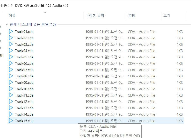 Audio CD로 인식되며 오디오 파일들이 보입니다.